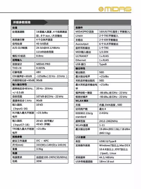 源於Midas PRO係列數字調音台的經典話放,同樣應用於Midas M32,如今業內專業調音師及錄音師均對Midas的音質給予高度評價。現MR18同樣集成了Midas PRO係列的經典話放,為其音質表現打下了堅實的基礎。MR18附有16個Midas PRO係列經典話放,為使用者提供優質的效果體驗。